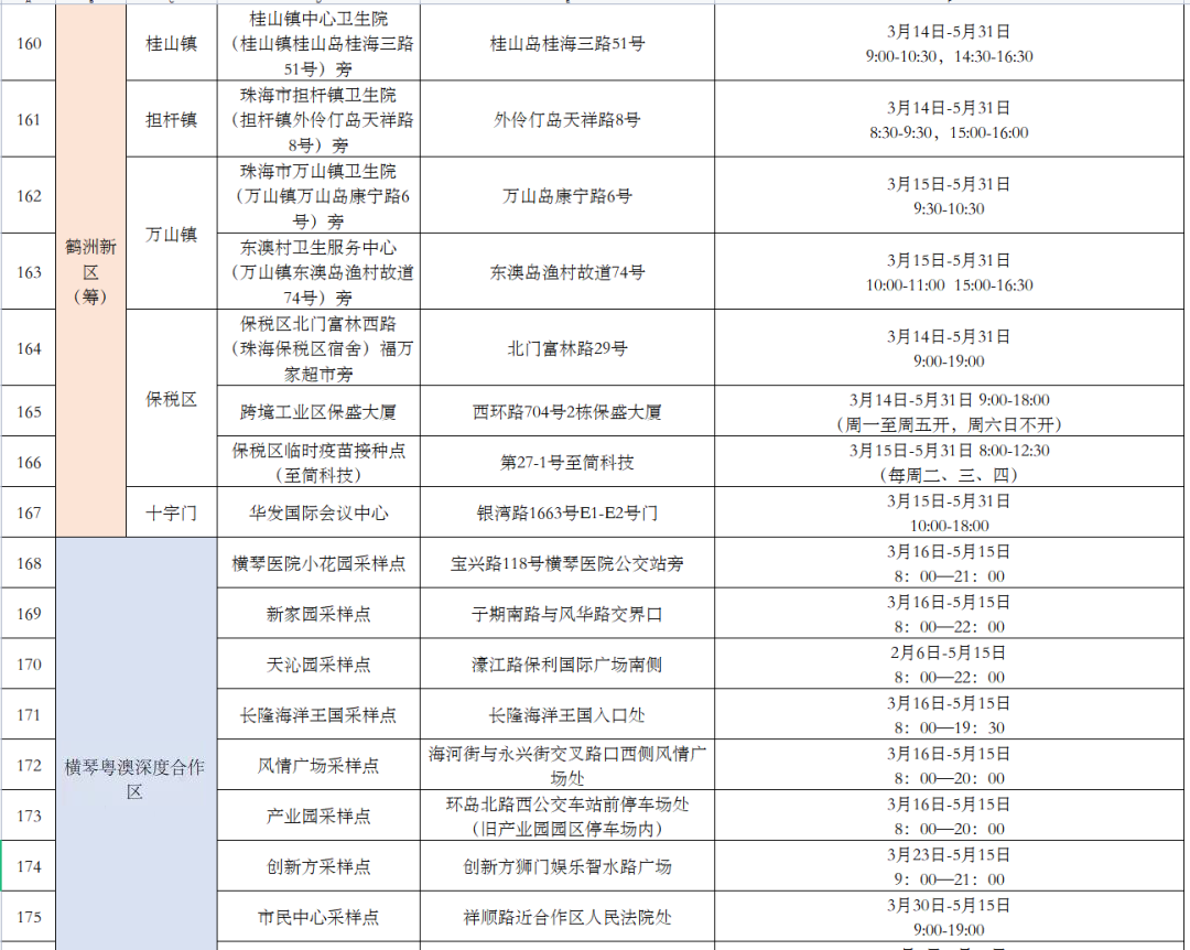 14天内从国内中高风险地区所在城市来(返)珠海且持有“绿码”人员、14天内从省外来(返)珠海且持有“绿码”人员,到达珠海后,可以到专门的核酸采样点进行采样。