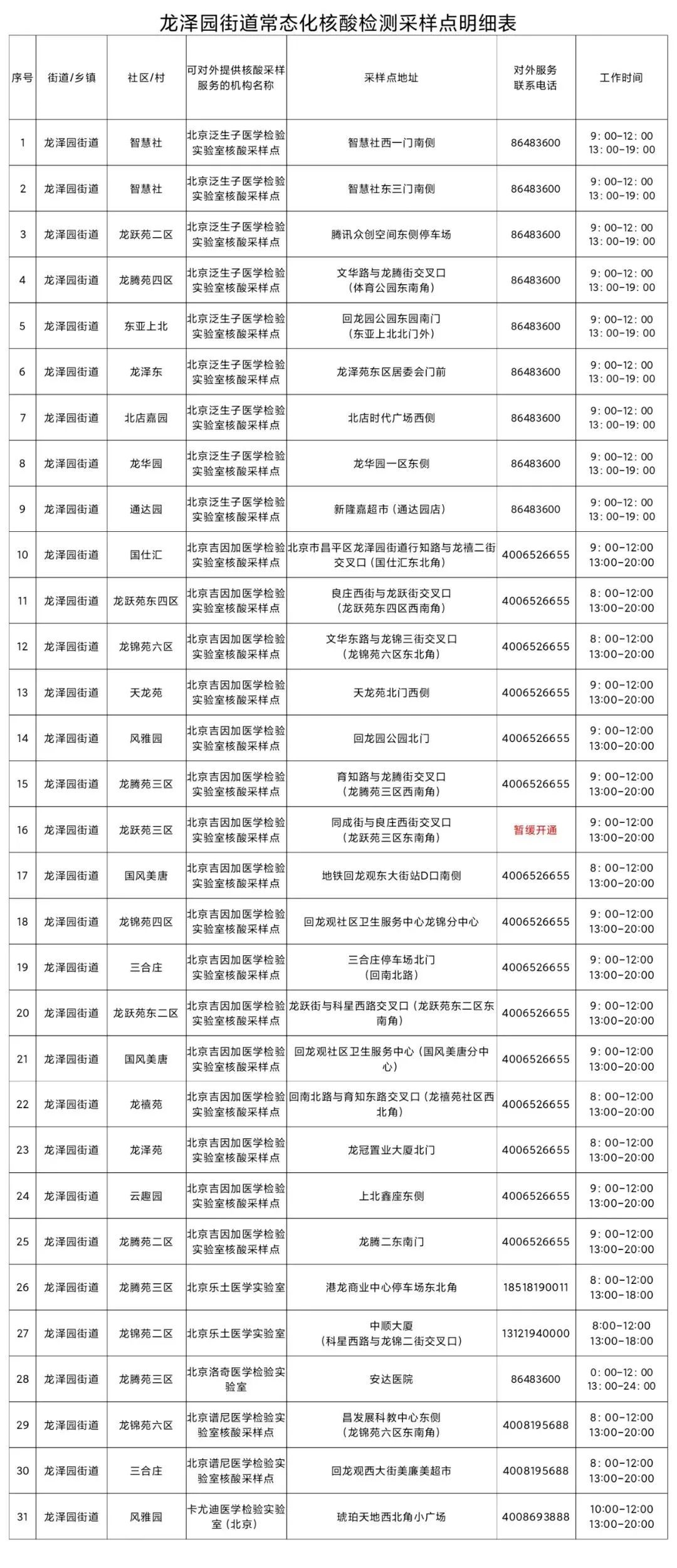 ➤北京昌平龙泽园街道常态化核酸检测采样点【因各采样点会有动态调整变化,具体实际情况为准】