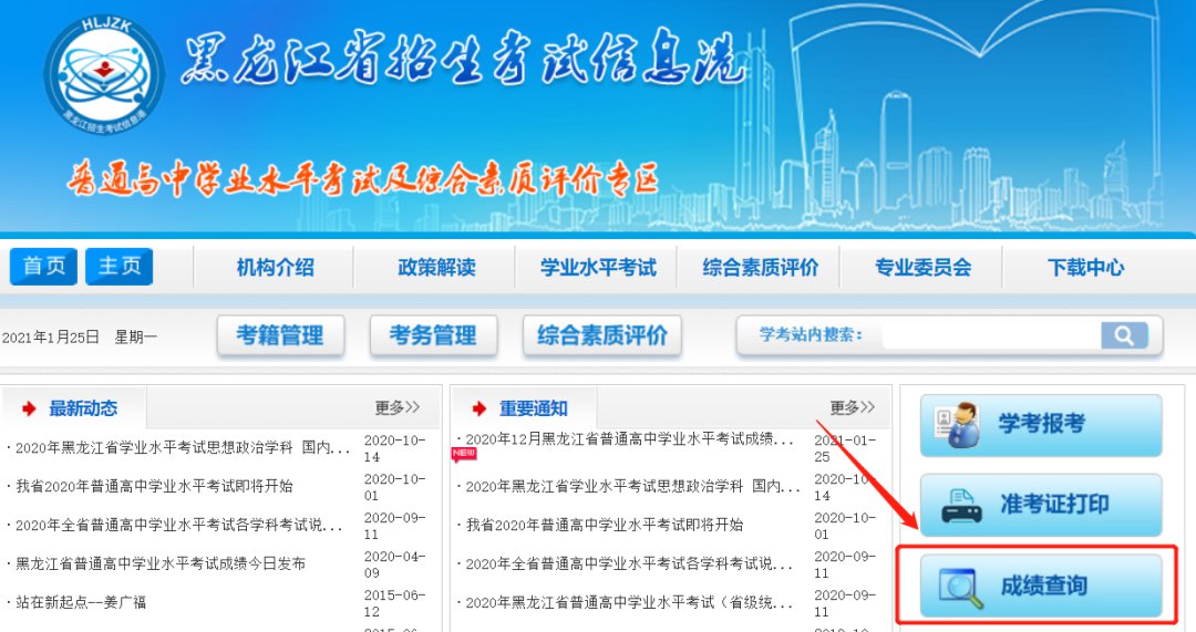 一、黑龙江省招生考试信息港成绩查询方式