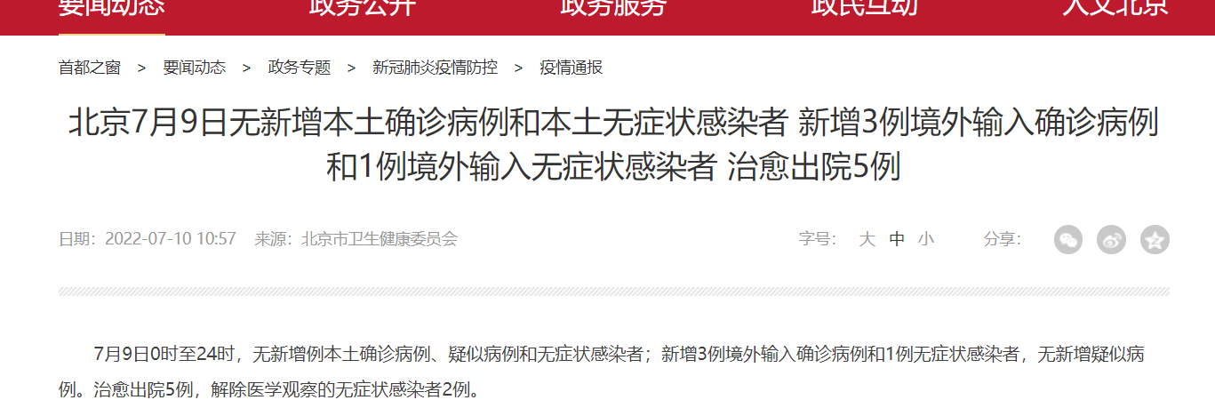 7月9日北京无新增本土确诊病例和本土无症状感染者