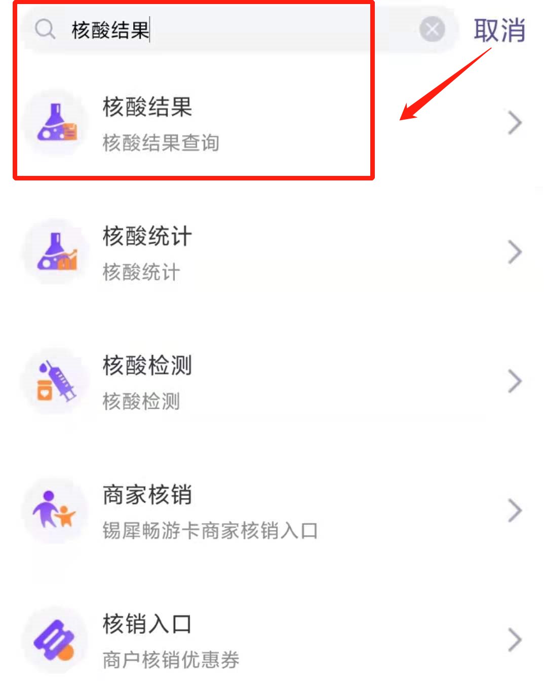 点击“核酸结果”,即可进入查询