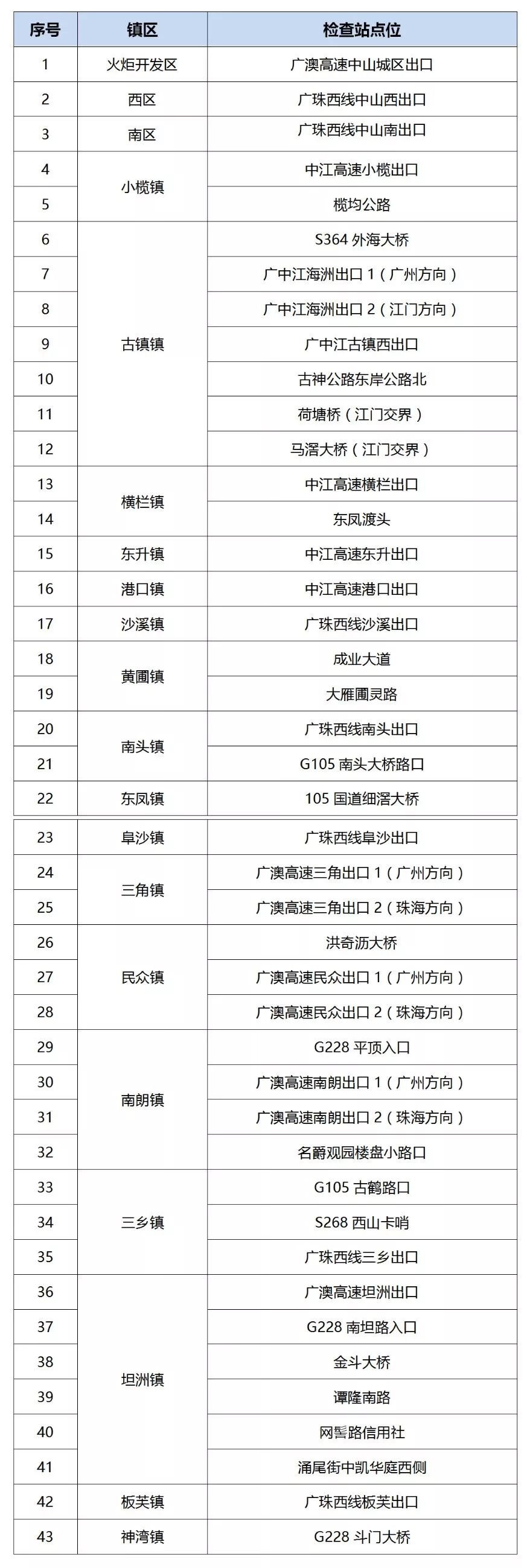 新型肺炎防控期间中山启动43个道路检疫检查站