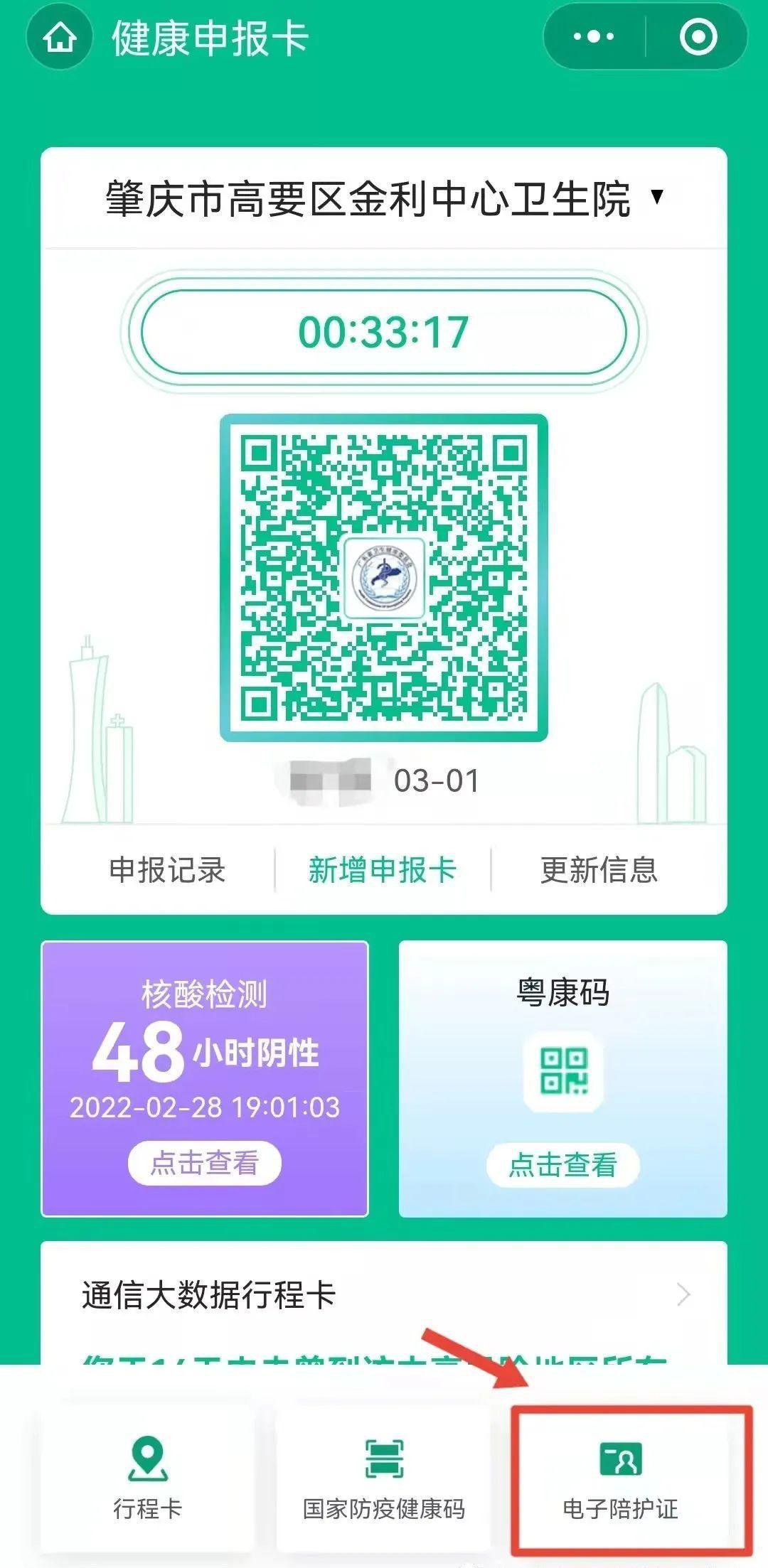 2、在健康申报卡二维码下选择“电子陪护证”。