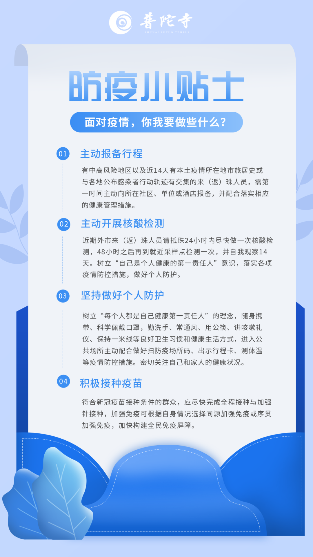 入寺按珠海市疫情防控指挥部最新防疫要求执行。敬请大众合理安排好出行时间,出示核酸记录与行程码,扫码、测温、全程佩戴口罩,保持一米间距,配合工作人员的现场指引。