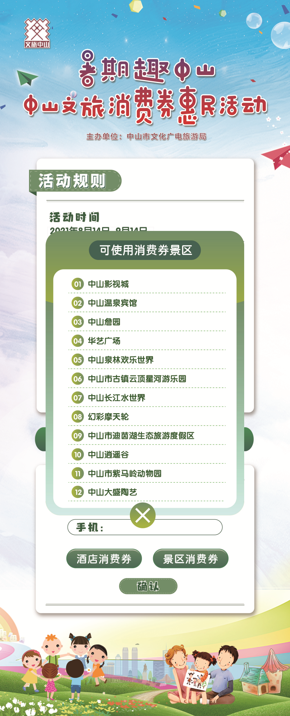 第一步:关注“文旅中山”抖音,在置顶视频进入活动链接,填写姓名和手机,选择酒店消费券或景区消费券