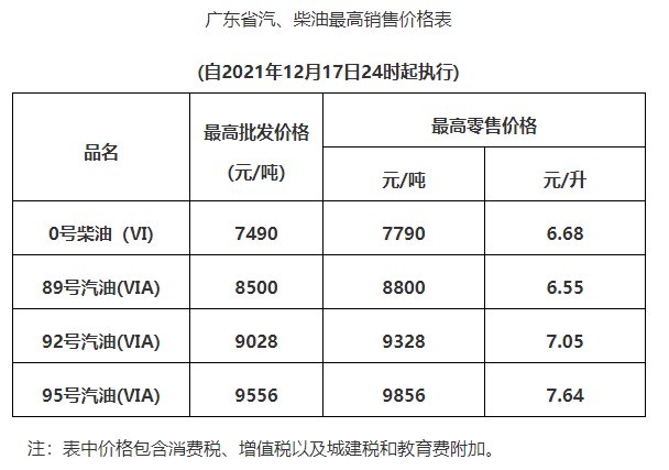 2021年12月17日广东油价下调(2020年12月广东油价)