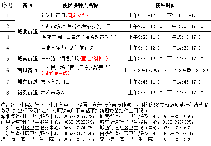 江城区4月28日新冠疫苗便民接种服务点安排如下: