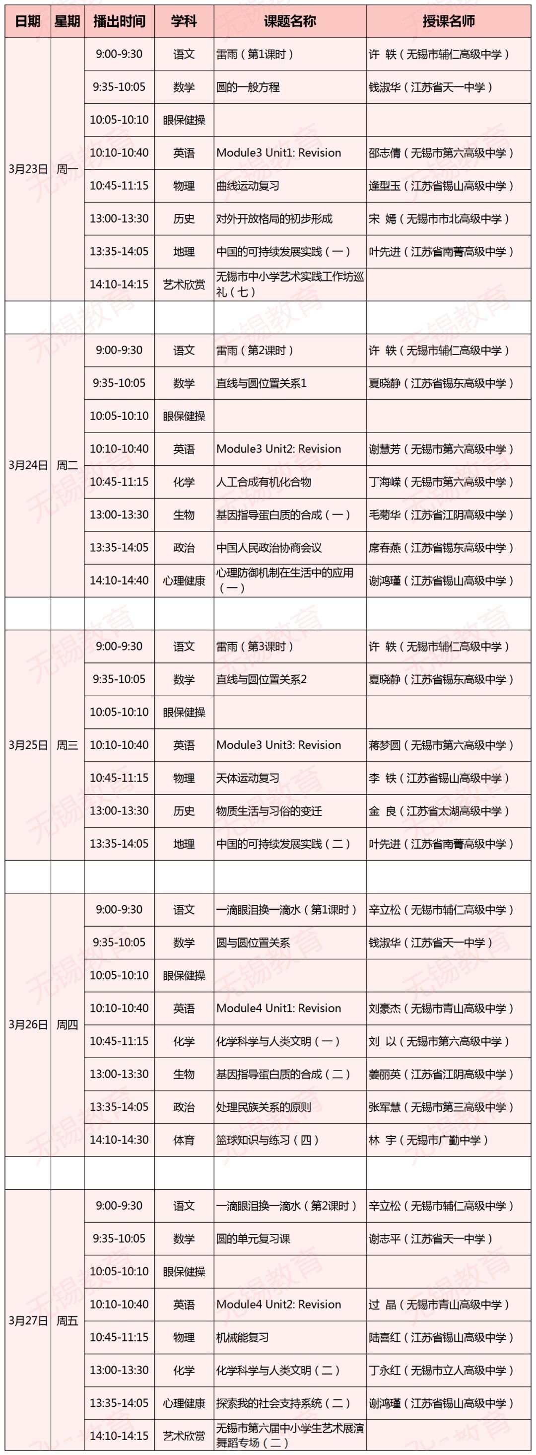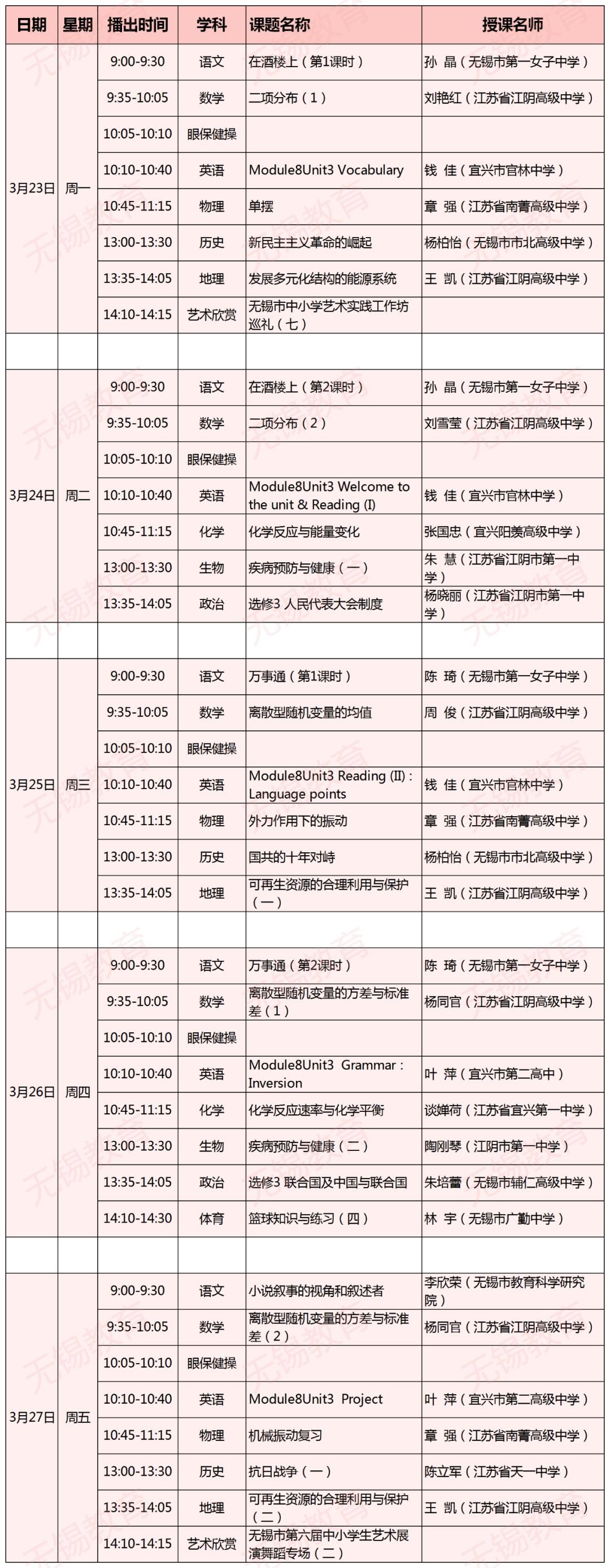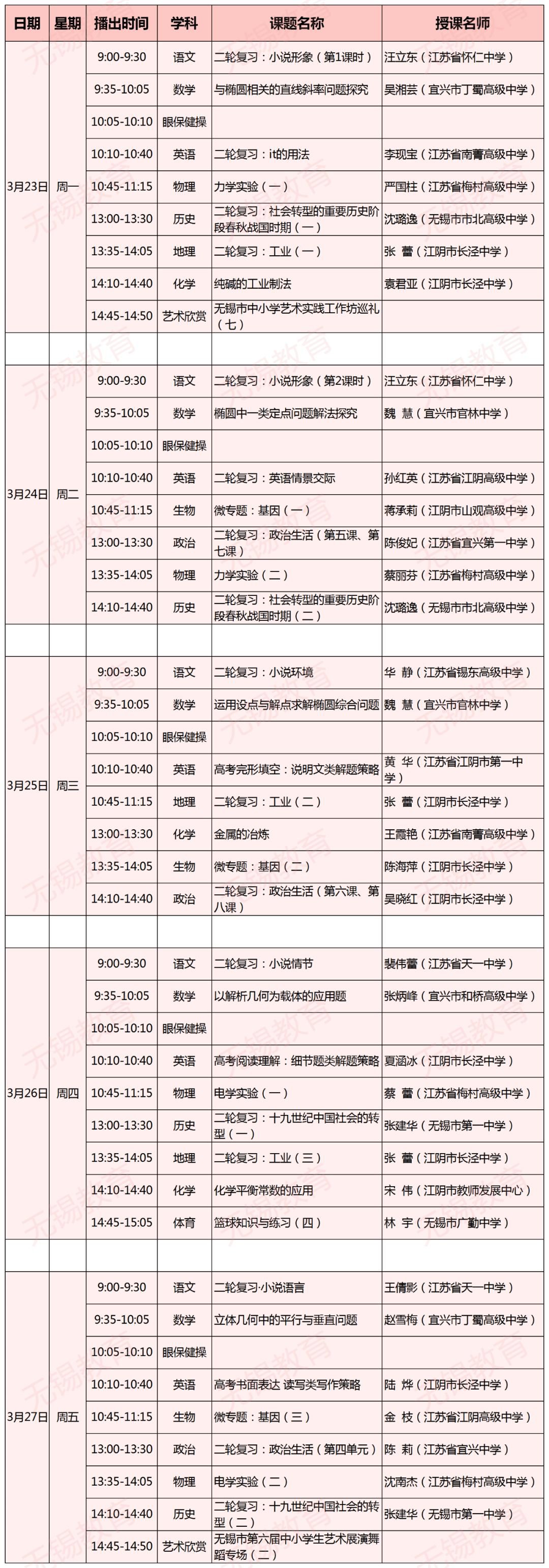 小学一年级至高三年级都是9:00开始;首播结束后可以通过点播方式再次学习