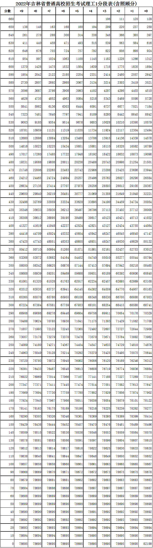 2022年吉林省高考理科一分一段表 吉林省21年高考理科分段分数
