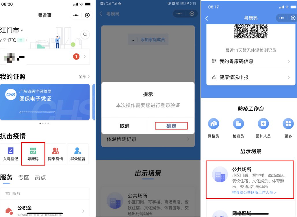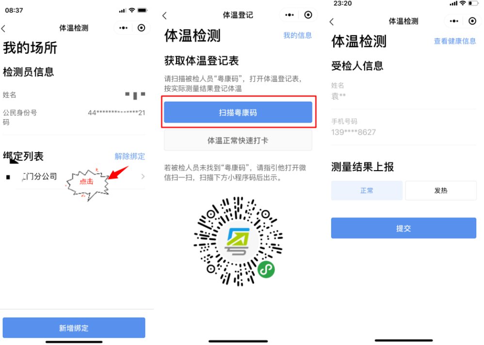 (二)扫描粤康码检测并登记公共场所异常体温人员体温: