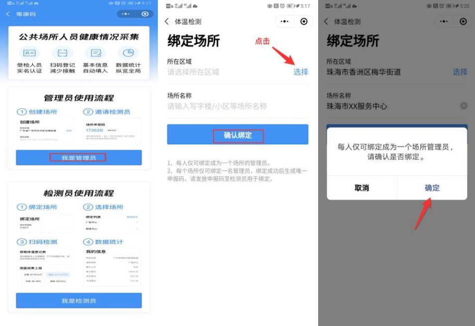 步骤二:点击“公共场所”-“我是管理员”完成绑定
