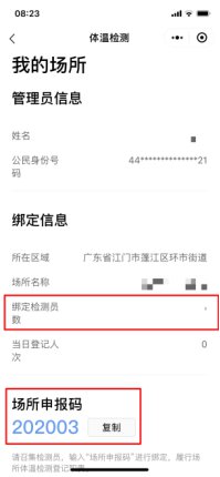 (二)分享场所申报码:场所管理员绑定成功之后,进入“我是管理员”-“我的场所”页面,可通过“复制号码”分享“场所申报码”给该场所的各个检测员,多个检测员均可绑定。
