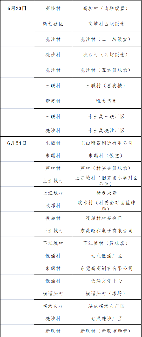 根据东莞市新型冠状病毒肺炎疫情防控指挥部统一部署和当前疫情防控形势,高埗镇将于6月23-24日开展区域核酸检测工作。现就有关事项通告如下: