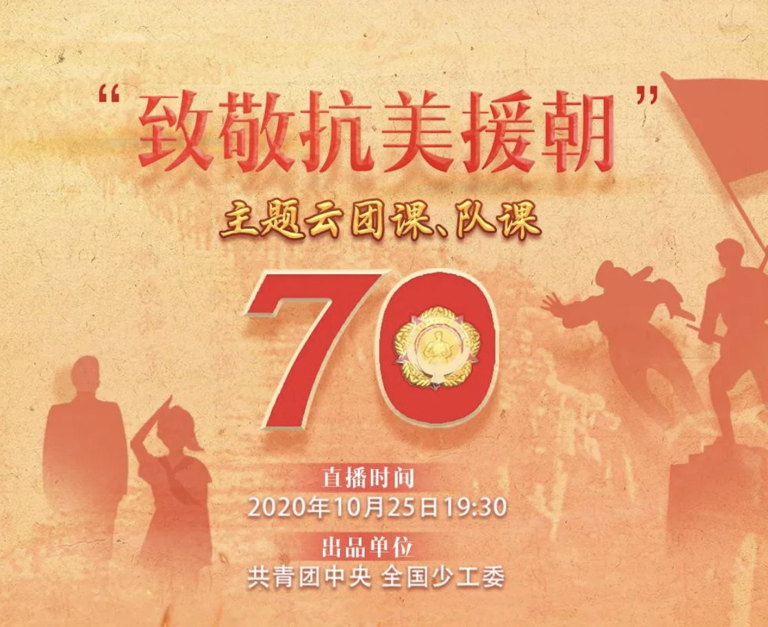 2020年10月25日晚上7:30,70年前中国人民志愿军在朝首战之日,我们向全体共青团员、少先队员隆重推出“致敬抗美援朝”主题云团课、队课。一场神秘的军博“探馆”,一回精彩的沉浸体验,一曲雄壮的英雄赞歌,一次震撼的精神洗礼。