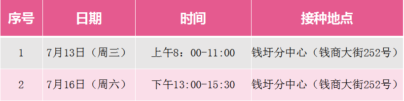 7月12日至17日徐汇区康健街道新冠疫苗接种安排