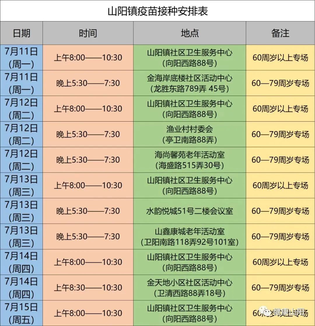山阳镇本周接种专场安排看这里