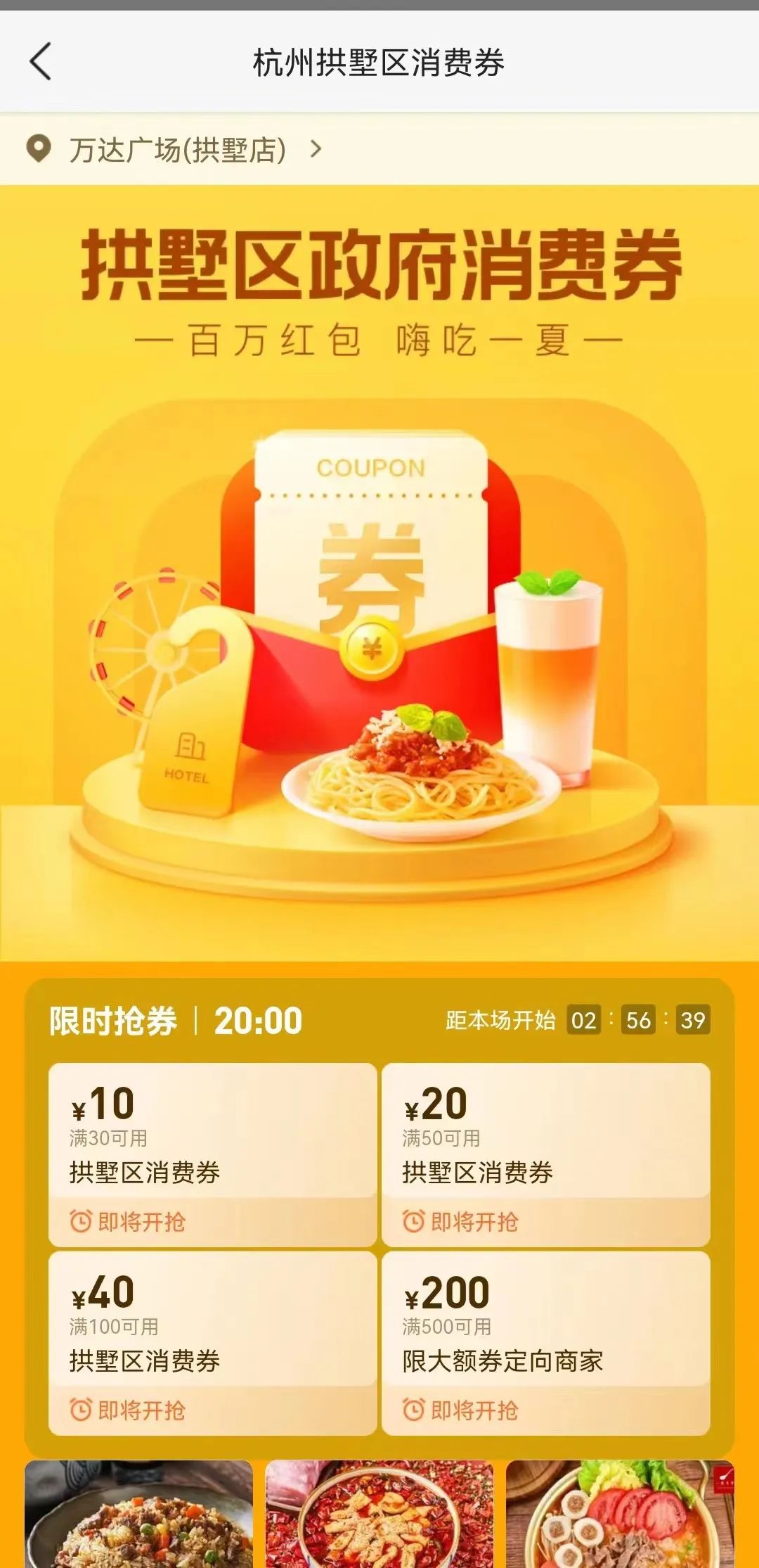 打开美团外卖App-搜索“拱墅消费券”即可直达活动会场,参与抢券。