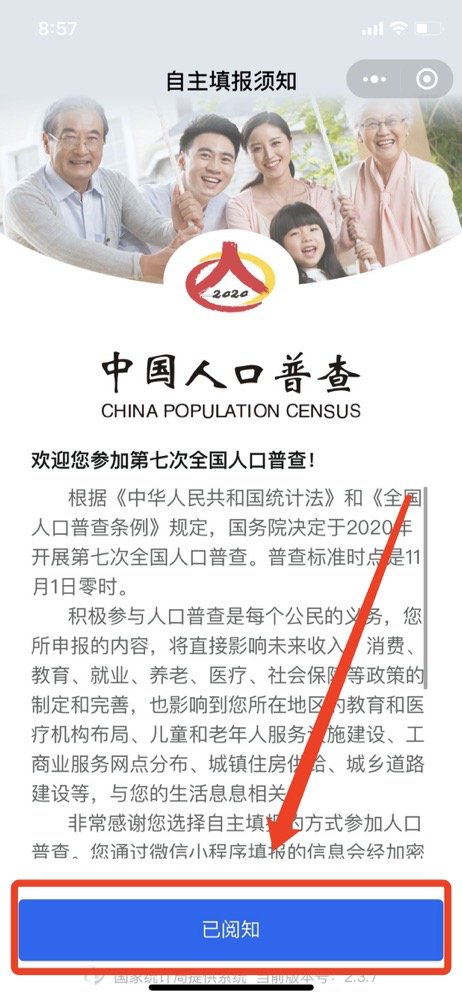 有普查员上门时会询问一些基础信息,告知相关信息后普查员会给一个二维码,微信扫码后获取申报入口。