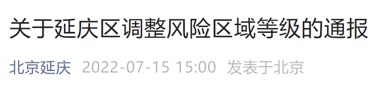 7月15日15时起北京延庆区调整风险区域等级通报