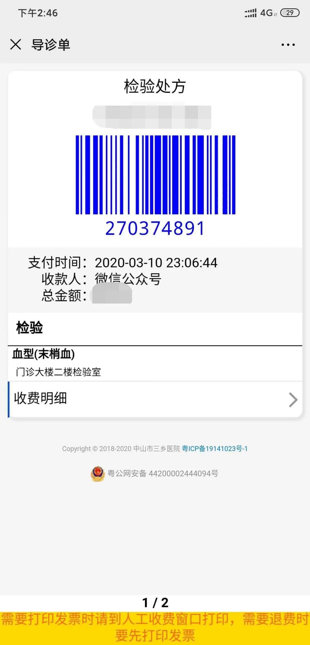 缴费后,您可以凭收费条形码,