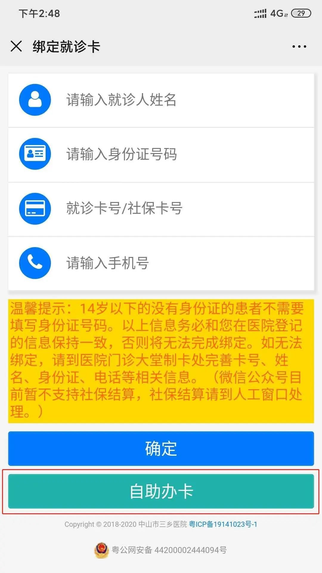 已在三乡有就诊卡的,请输入个人信息