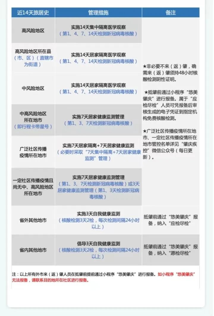 1、群众报备前可通过肇庆发布—疫情防控—本地疫情防控措施及时了解肇庆本地疫情防控政策和各类健康管理方式要求。目前我市的来(返)肇人员健康管理政策如下(2022年5月21日开始实行):
