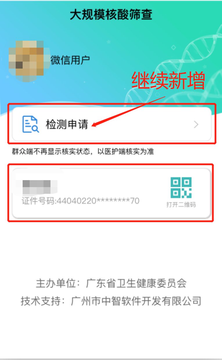 如需新增受检人员,请返回首页,点击“检测申请”重复以上步骤,继续填写信息