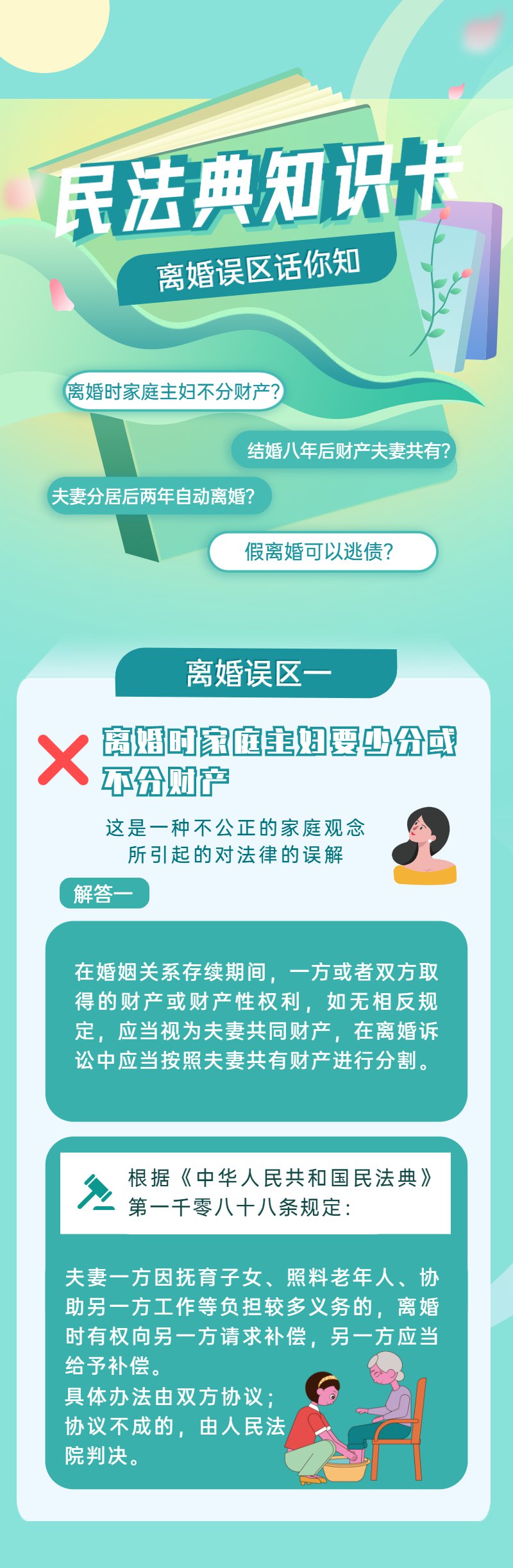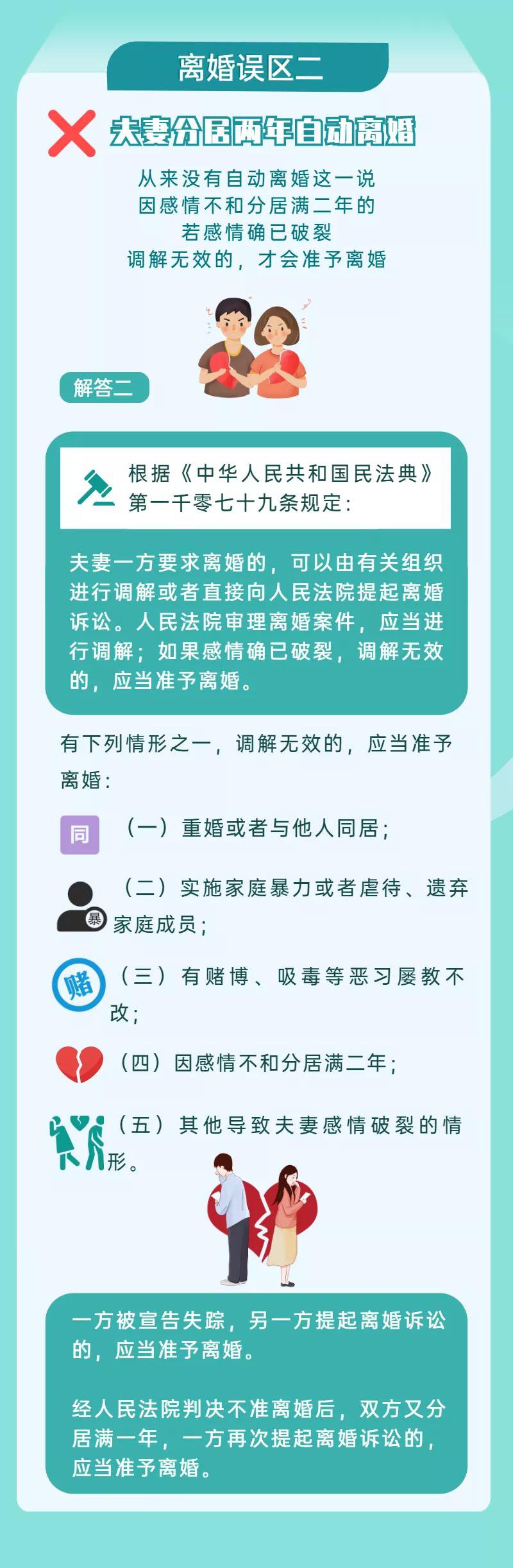 “分居二年即可自行离婚”。“先提出离婚会吃亏”。“没和家人商量,法院不能判离婚”。“只要没判离,就有权接妻子回家”。“判离就可以和子女一刀两断”。“既然离婚,见面礼就应该返还”。“假离婚可逃避债务”。