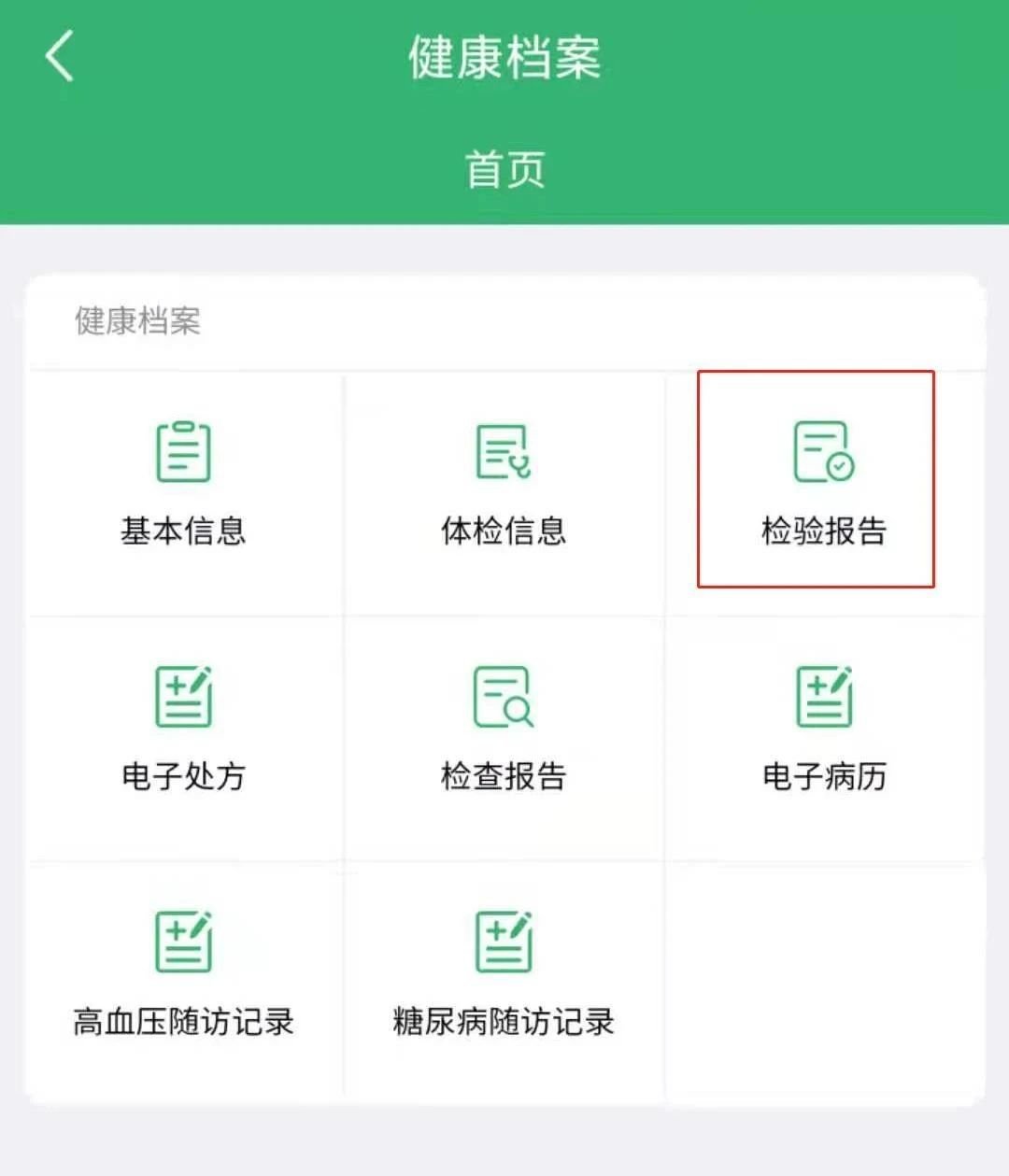 点击“首页”->“健康档案”,进入页面进行实名认证,认证后即可通过查看本人健康档案里的检验报告查询核酸检测报告。