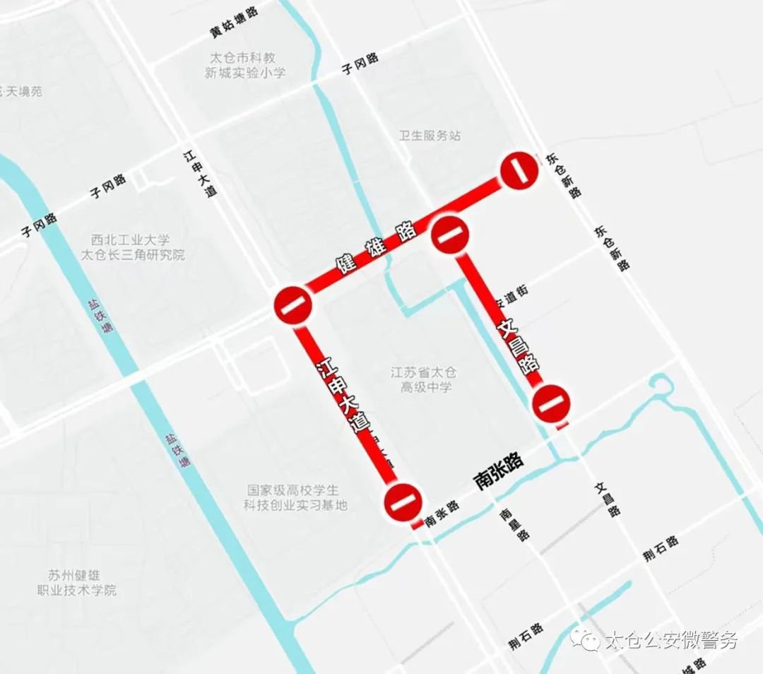 1、管制路段:健雄路(东仓新路—江申大道)、文昌路(健雄路—南张路)和江申大道(健雄路—南张路)。