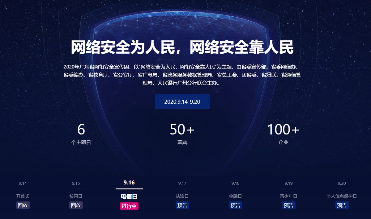 2020年广东省网络安全宣传周直播时间:9月14日-9月20日