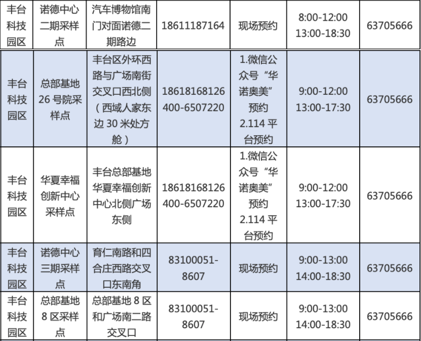 ➤北京丰台科技园区常态化核酸检测点【因各采样点会有动态调整变化,具体实际情况为准】