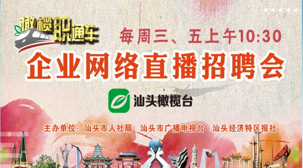 直播时间:橄榄“职”通车3月4日在汕头橄榄台正式上线,逢周三、周五上午10:30