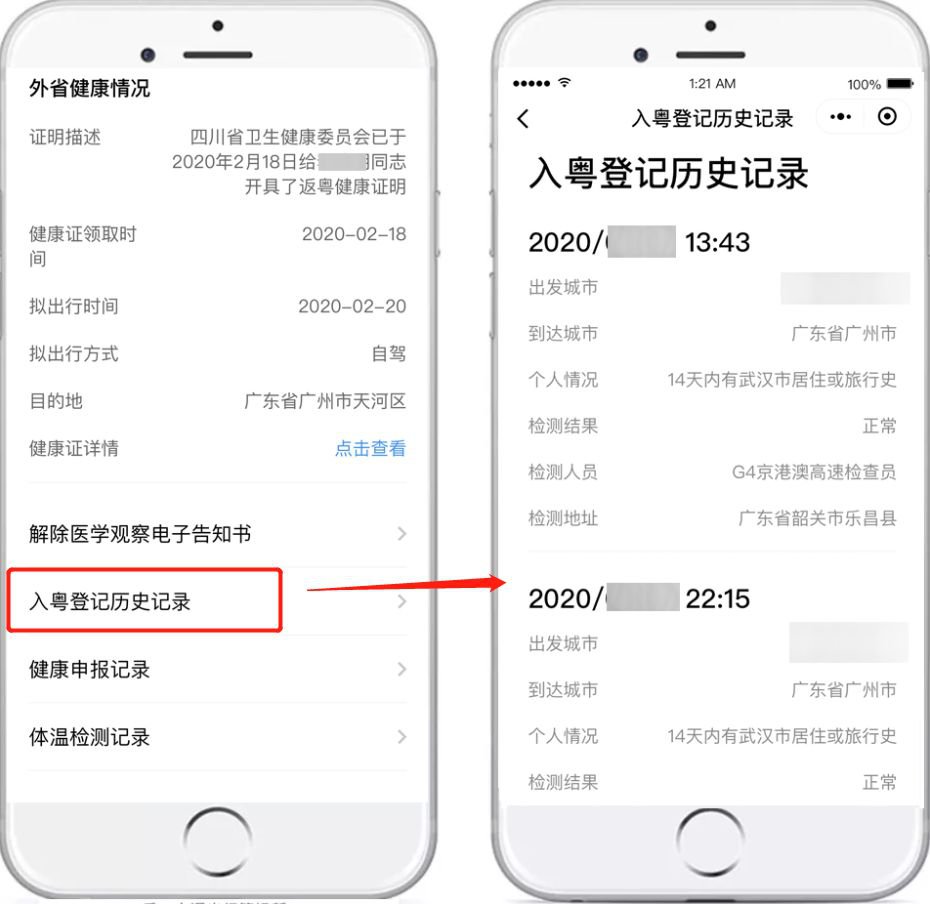 查询入粤登记历史记录