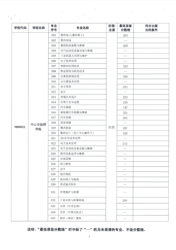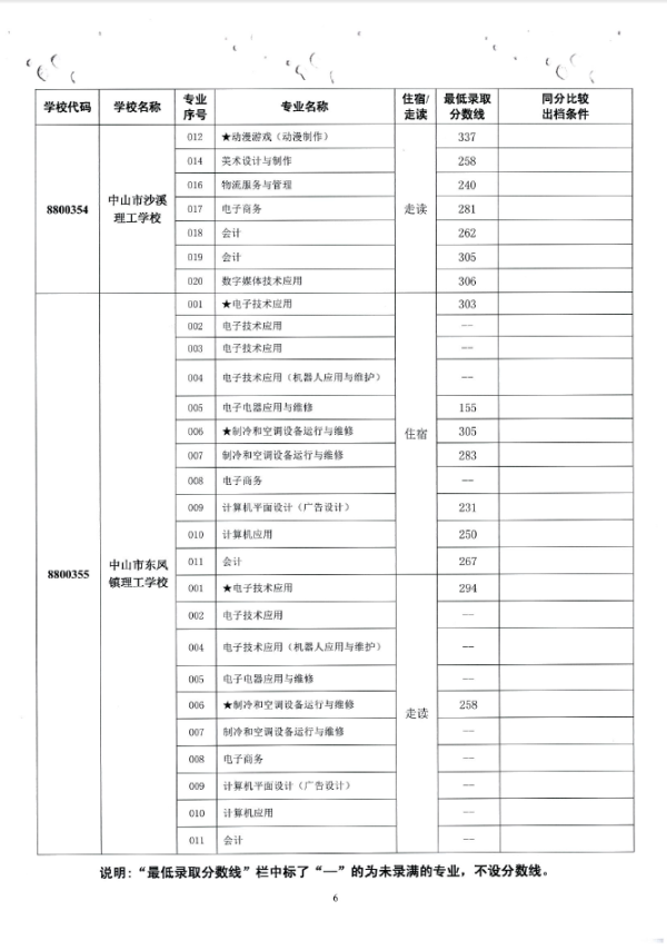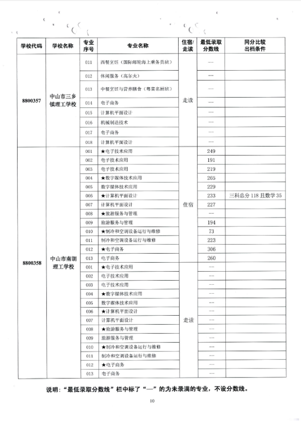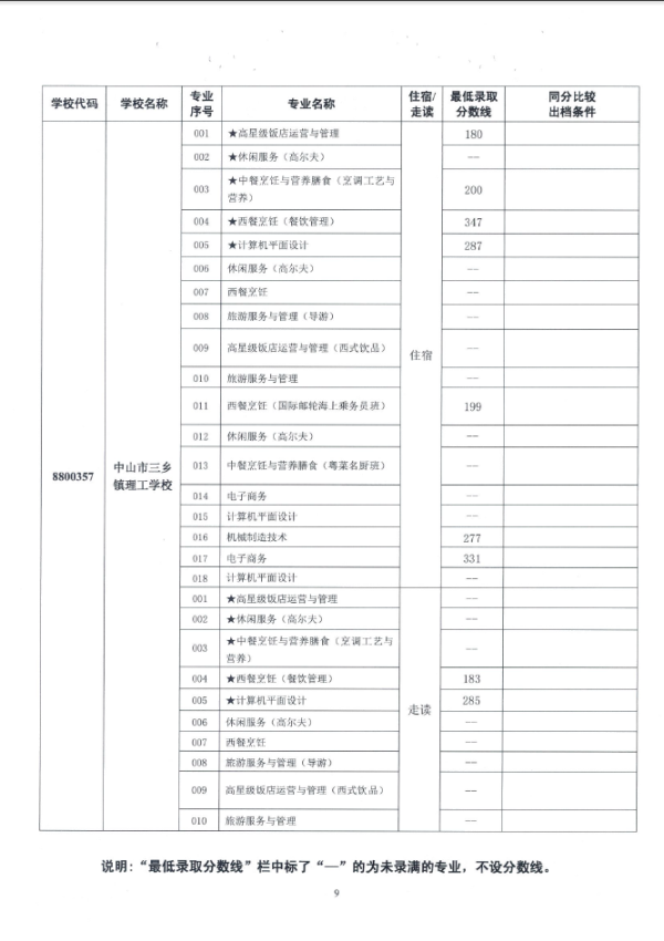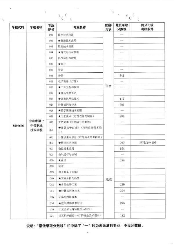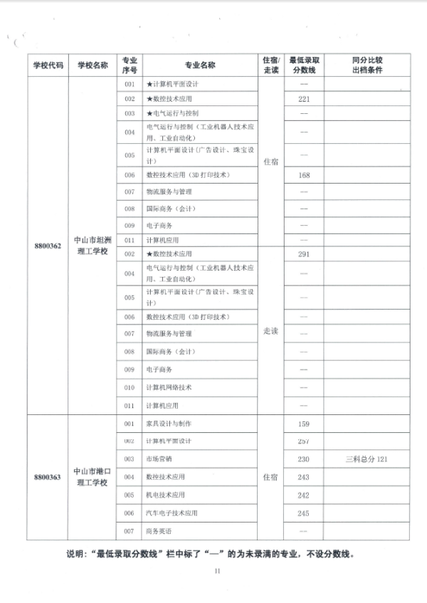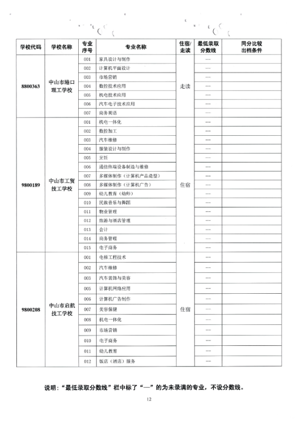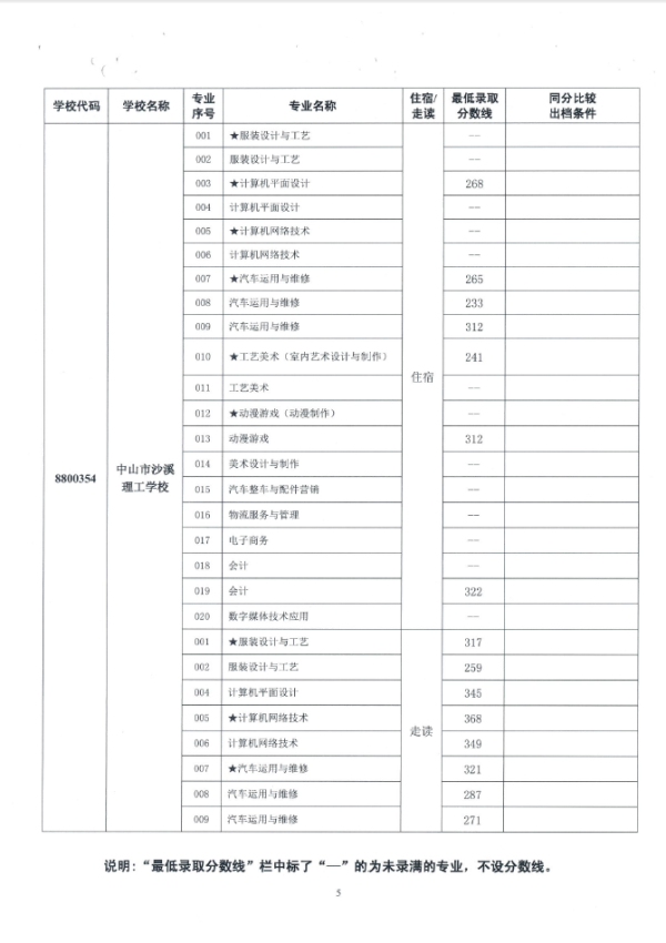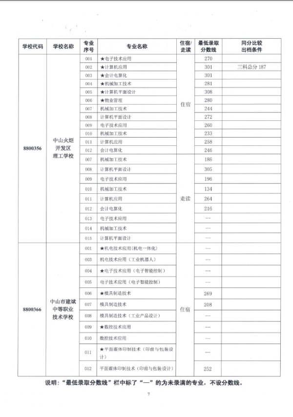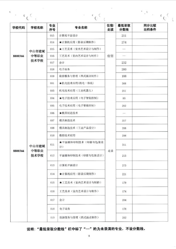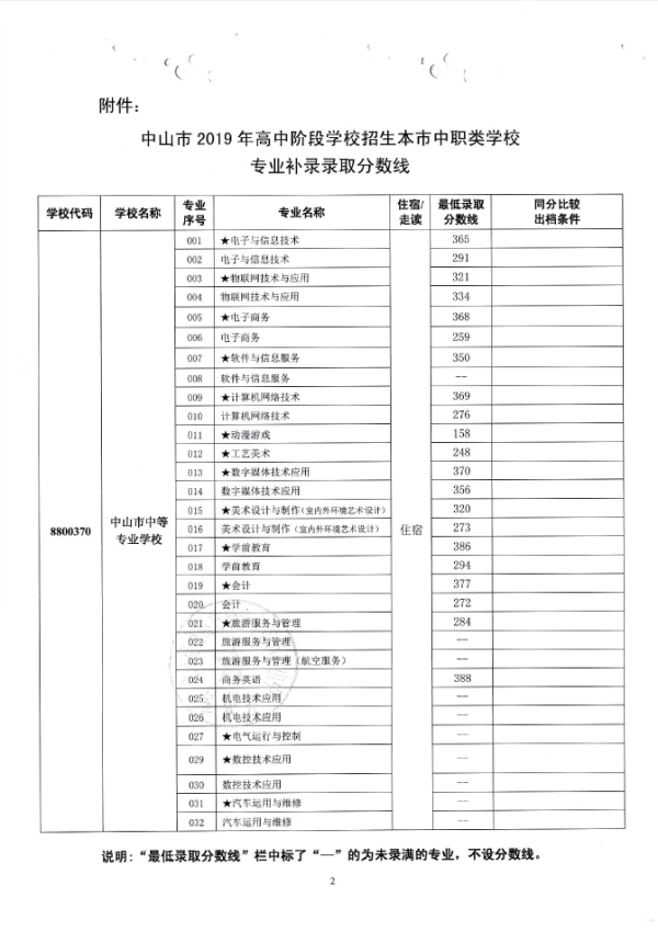 2019中山市中职类学校专业补录录取分数线