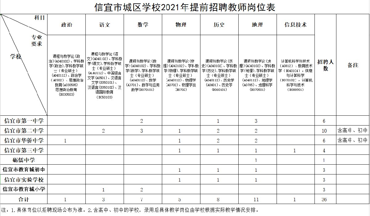 招聘学校涉及信宜一中等市直学校8所,共招聘教师36人。