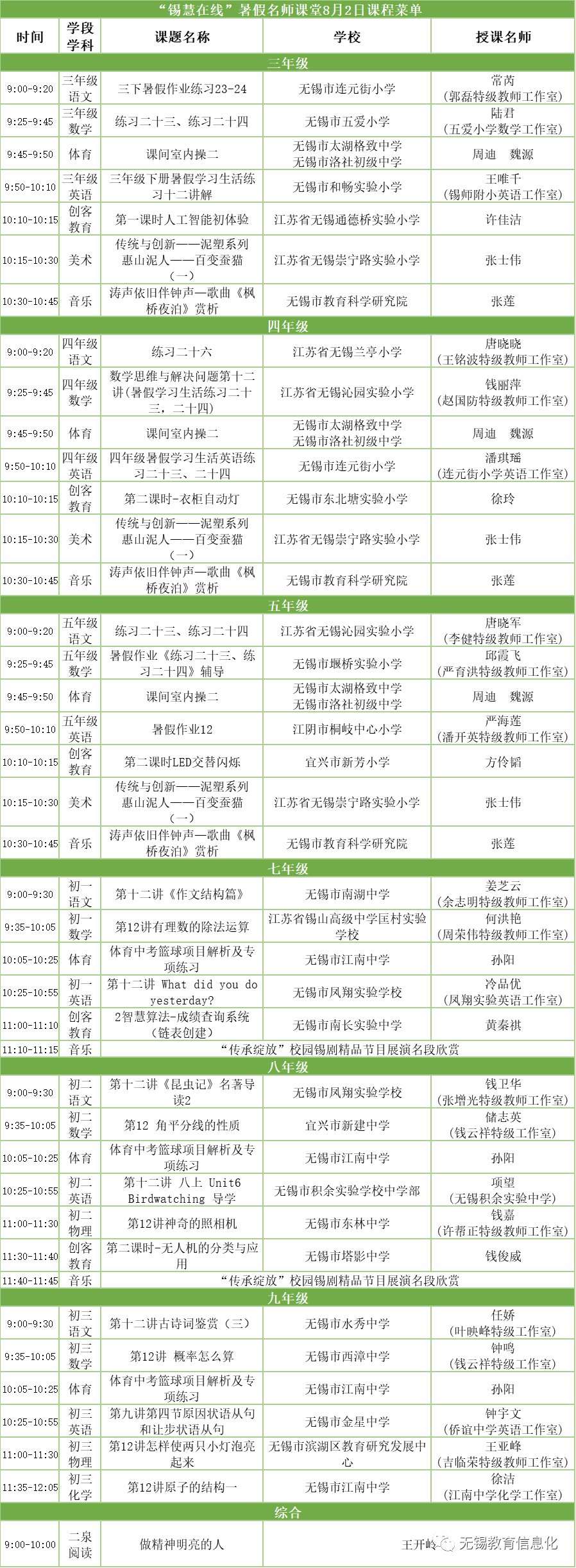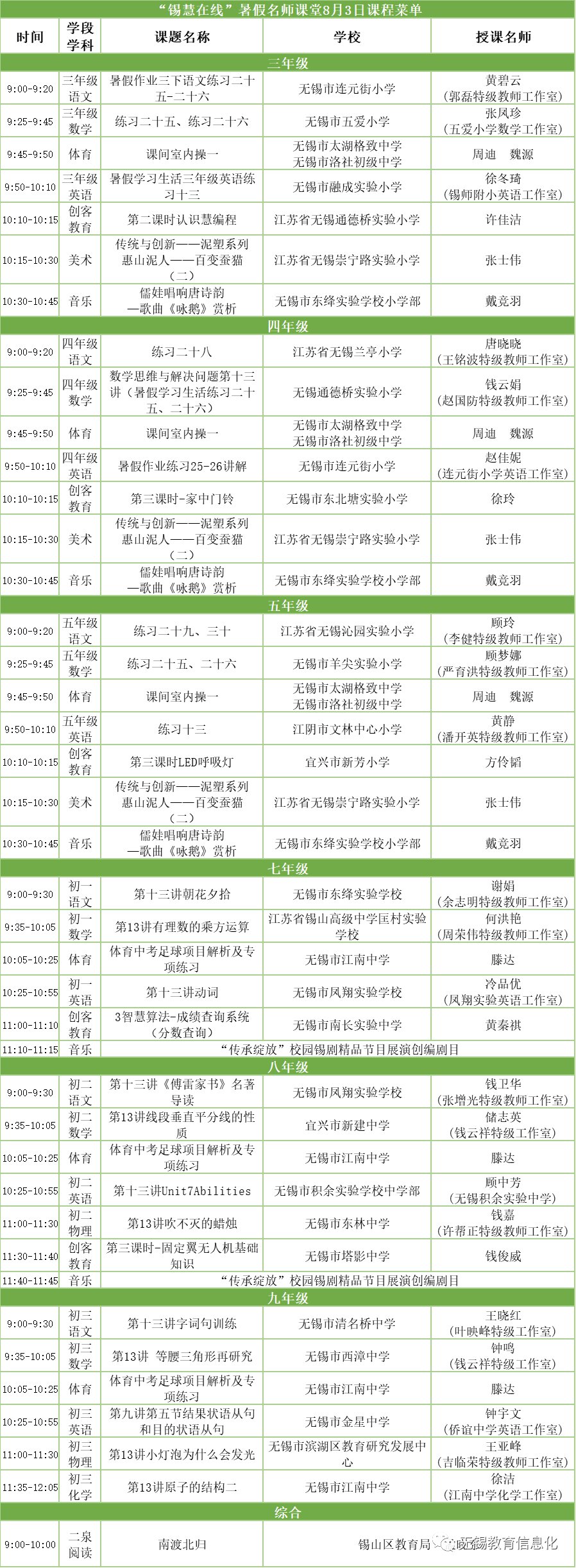 小学一年级到九年级都是9:00开始,首播结束后可以通过点播方式再次学习