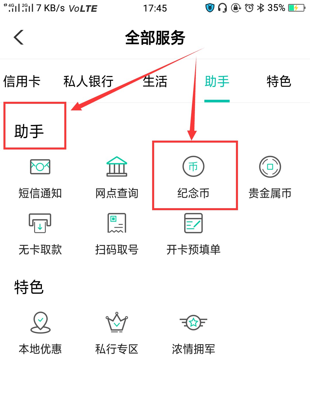 进入APP后点击页面中的“全部”;接着将页面下滑,在“助手”栏下点击选择“纪念币”进行预约;