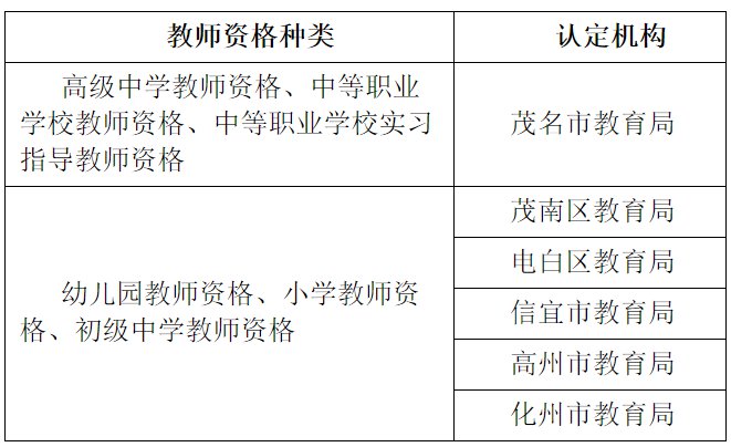 茂名各教师资格种类对应的认定机构