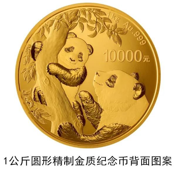 (七)1公斤圆形金质纪念币为精制币,含纯金1公斤,直径90毫米,面额10000元,成色99.9%,最大发行量1000枚。