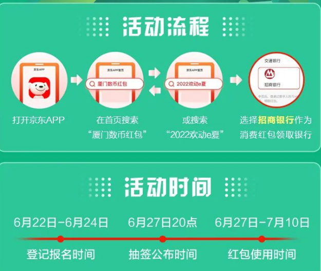 报名方式:市民可通过招商银行APP、京东App等渠道,进入“2022欢动e厦”活动专区界面,根据活动参与攻略指引进行报名。