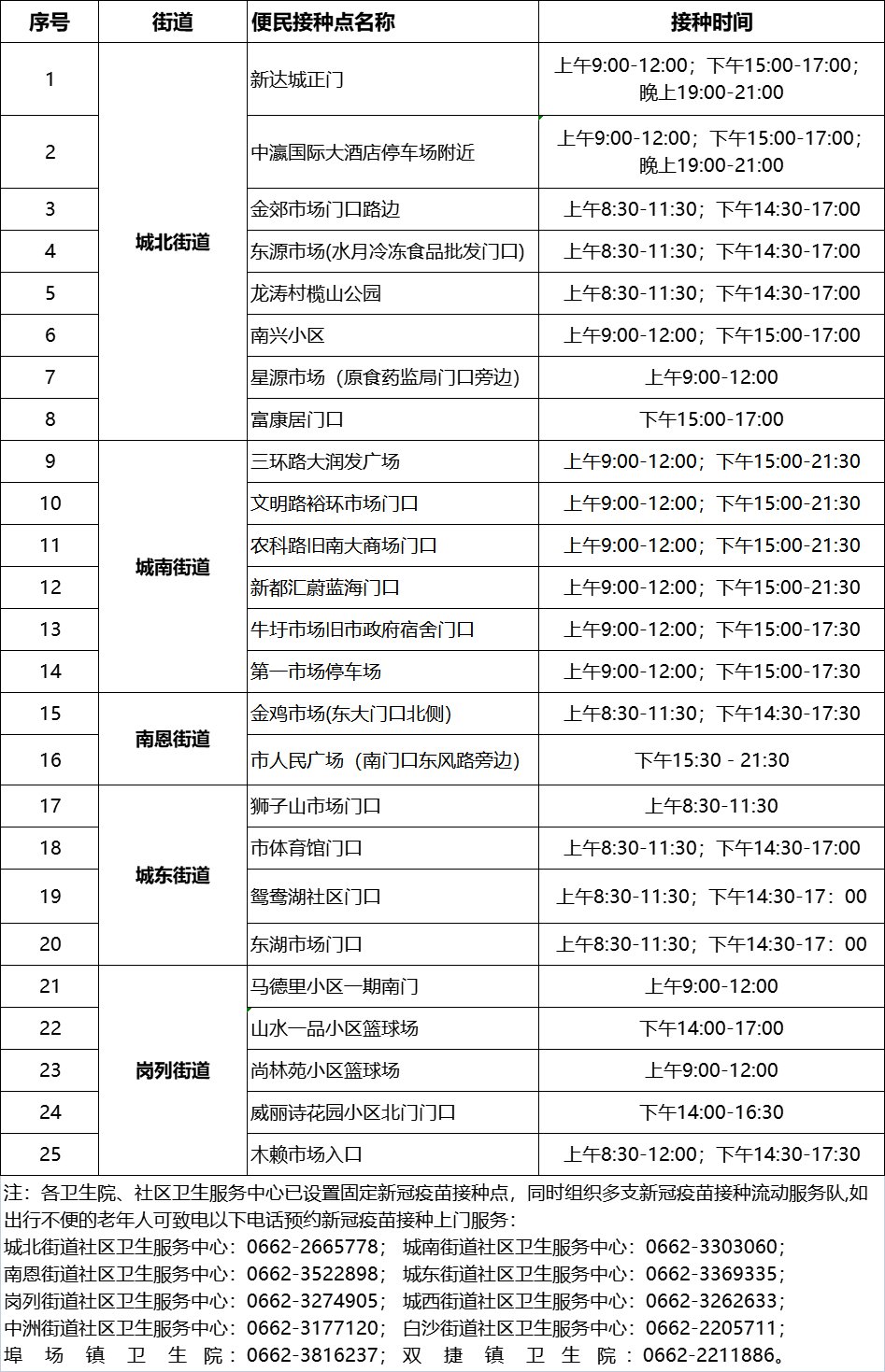 江城区3月28日新冠疫苗便民接种服务点安排如下: