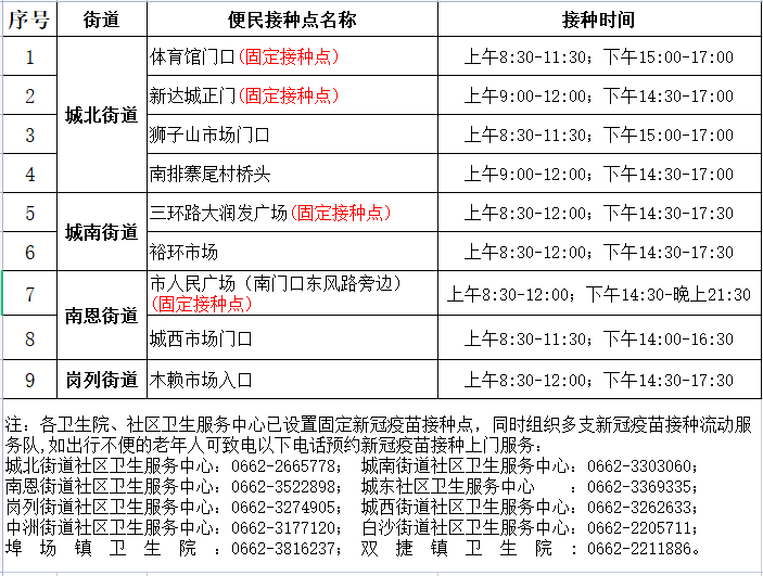 江城区4月20日新冠疫苗便民接种服务点安排如下: