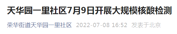 7月9日北京荣华街道天华园一里社区核酸检测通知