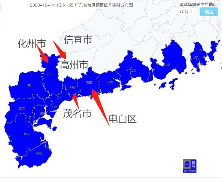 其中,高州市与信宜市已经解除了台风蓝色预警信号,但是暴雨预警信号还在持续。