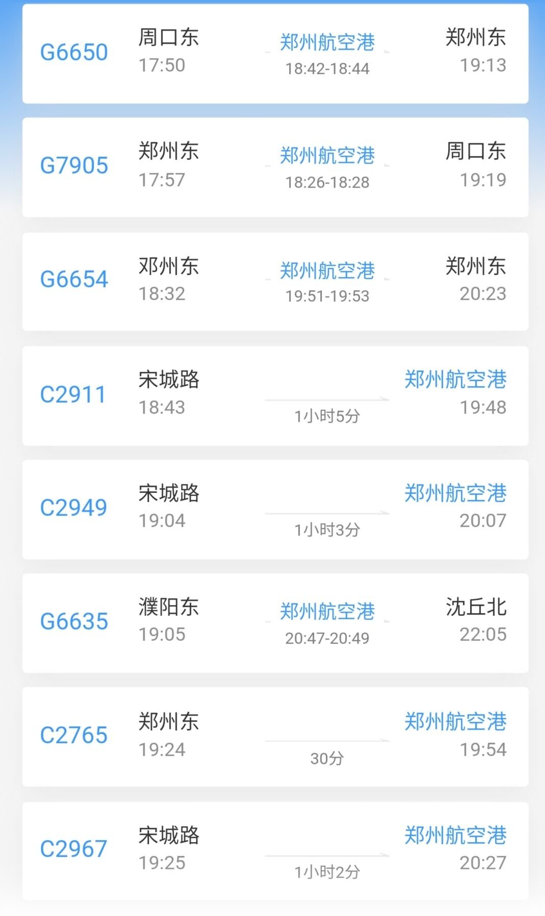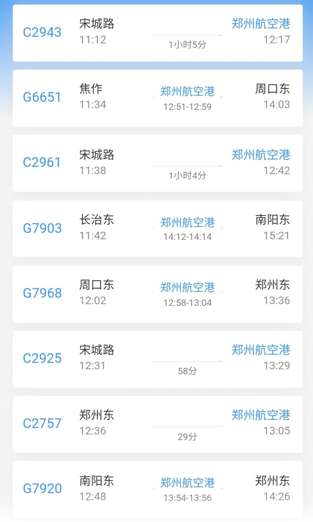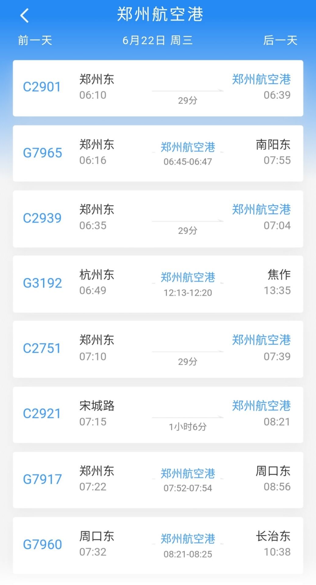 2022郑州航空港站车次信息(该信息只为6月22日当天情况,具体车次以官网信息为准,该信息只供参考)