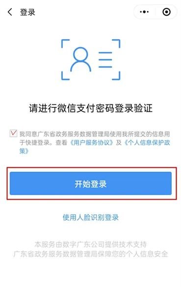 5、进行身份认证。首次使用需要验证登录,两种方式均可(微信支付密码登录验证或人脸识别验证)。
