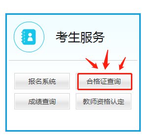 第一步:打开以上页面,在【考生服务】中选择【合格证查询】。