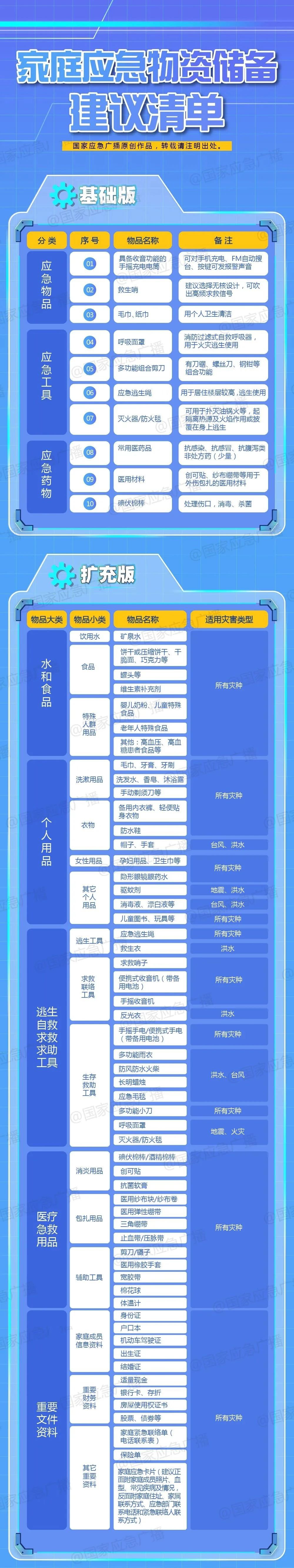 【全国家庭应急物资储备建议清单(基础版+扩充版)】