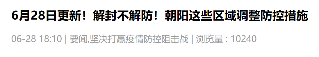 6月28日北京朝阳区解封最新通告